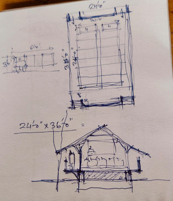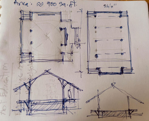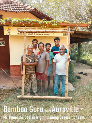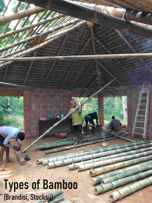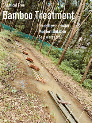 planted bamboos, Bamboo washing/treatment area, Bamboo workshop and carpentry sheds