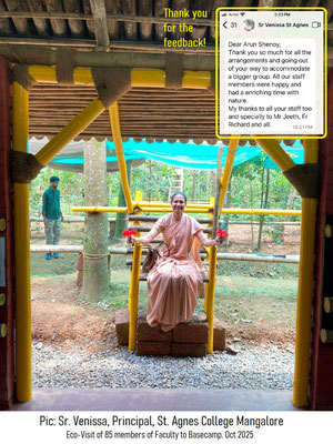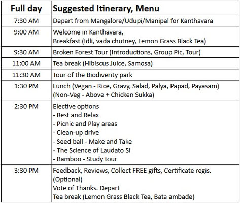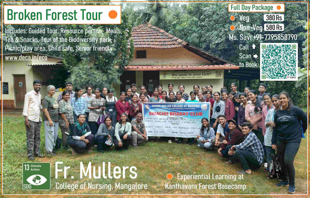 Experiential learning day trip which throws light on what we humans construe as forests, the state of India's forests and the value of our forests. Experiential learning, especially for young people who stand to inherit the little that is left of our forests. Enjoyed by students from Mangalore, Moodbidri, Udupi, Manipal, Mysore and Bangalore. Suitable for family and office group outings. Visitors Gallery, Google Maps - Location, SDG13 Cert. Verification